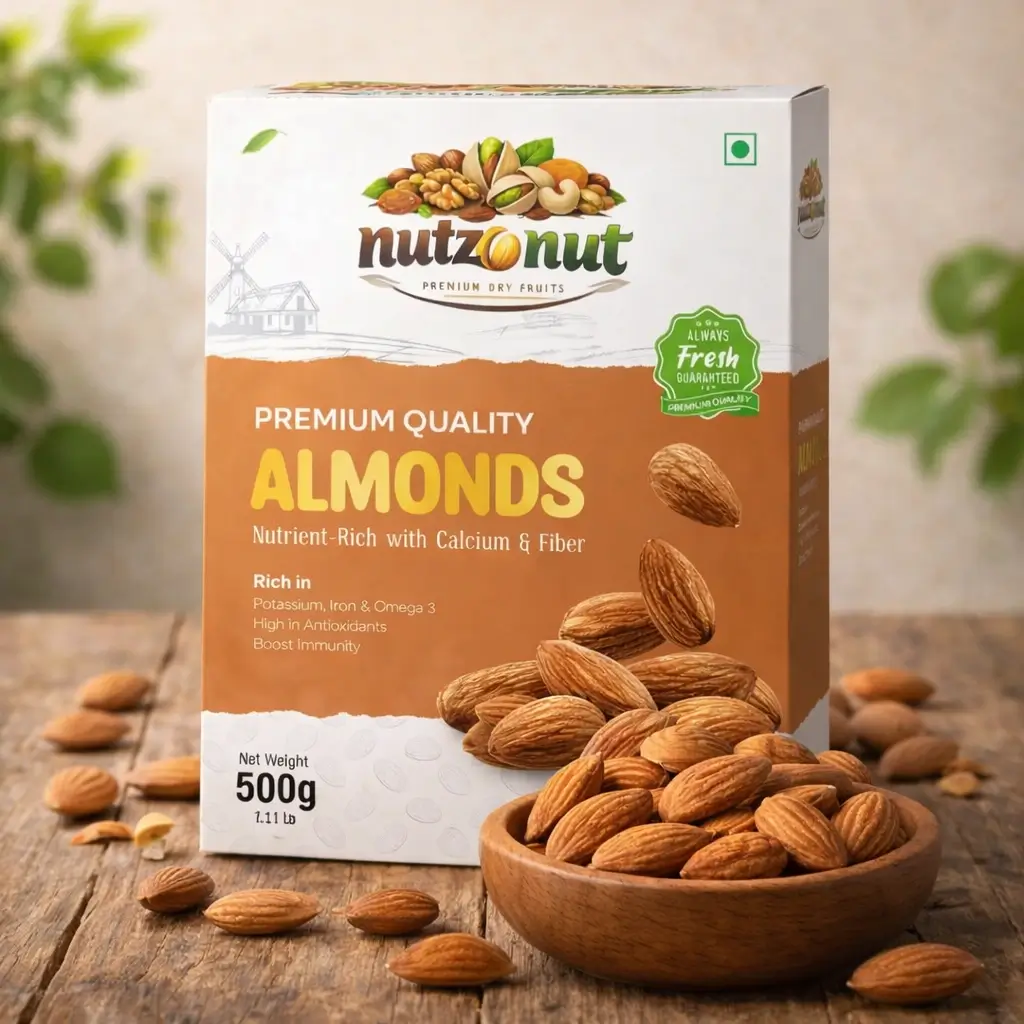 Premium quality Mamra Badam (Almonds) packed with essential nutrients like calcium, fiber, iron, and omega-3. Perfect for daily health, immunity, and energy.